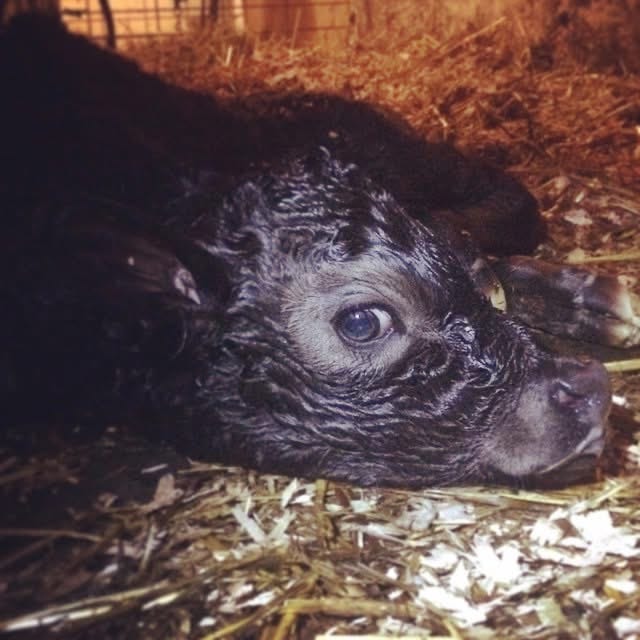 And then, a giant, warm, wet “swoosh” of liquid and slippery calf. We were thrown backwards by our own momentum, encouraged by uterine contractions and inertia into the sweet-smelling, fresh straw bed.